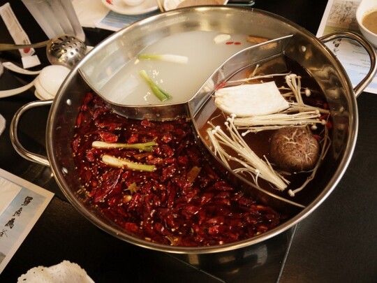 小尾羊是波士顿第一家有三味锅的火锅店,比起以往的鸳鸯锅,顾客有了更多的选择。图中这锅是蒙古滋补清汤丶秘制麻辣汤丶养生菌菇汤。麻辣锅为了迎合外国人的口味,没有想象中的那么辣,爱吃辣的朋友点单时可以和服务员要求辣的分量。