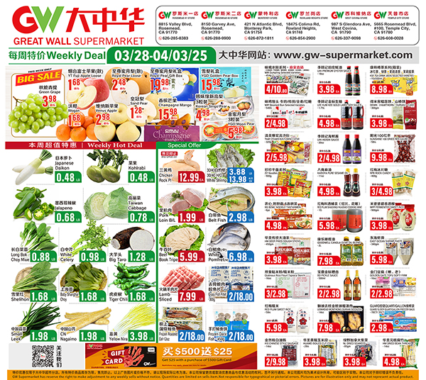 大中华超市 各州门店 03/28/25~04/03/25 特价
