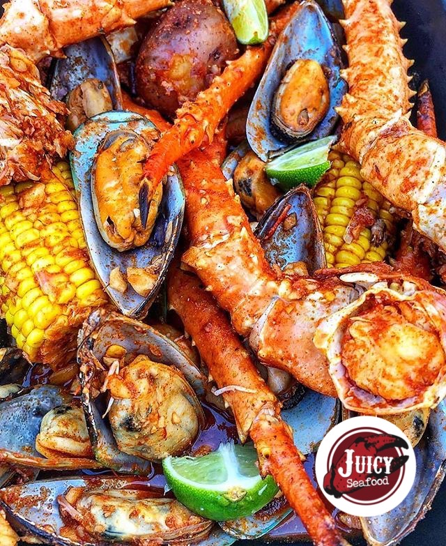 Food preparation in Juicy Seafood is simple and direct. Fresh raw materials are free of any additives and condiments so that the food can retain its original flavor and taste. Cajun style seafood, which is served by hand, is an original cuisine among the rustic foods and its peculiarity lies in the combination of spicing powder and fresh seafood, accompanied by boiled corn and potato, which creates the Cajun-style cuisine.