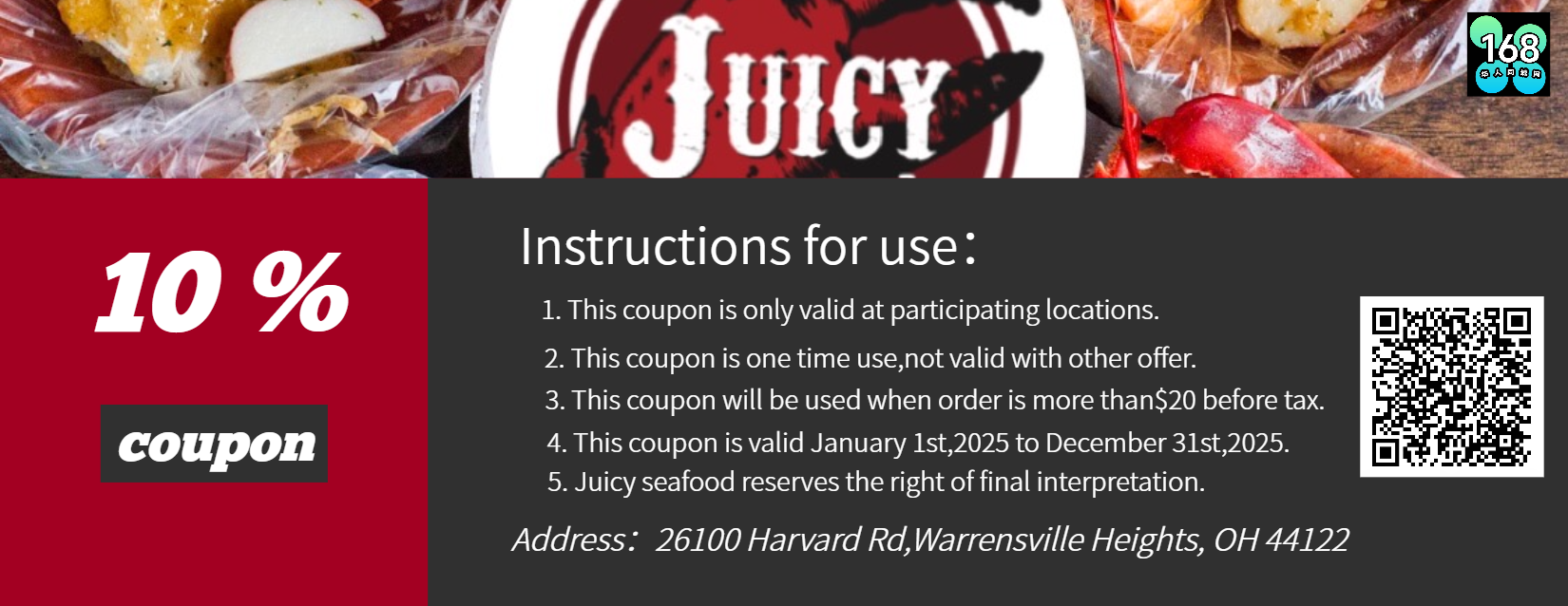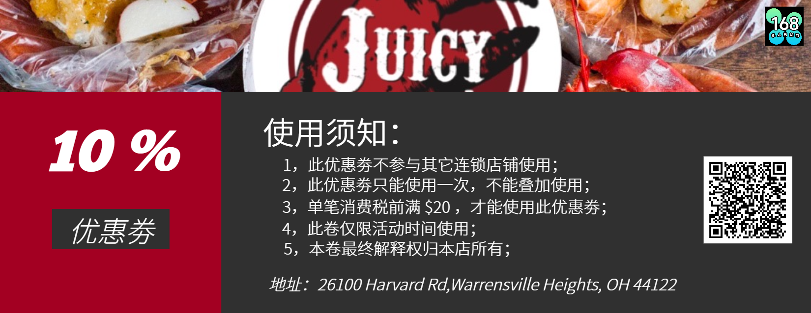 Juicy Seafood 平台合作专享优惠劵 有效期至12/31/2025