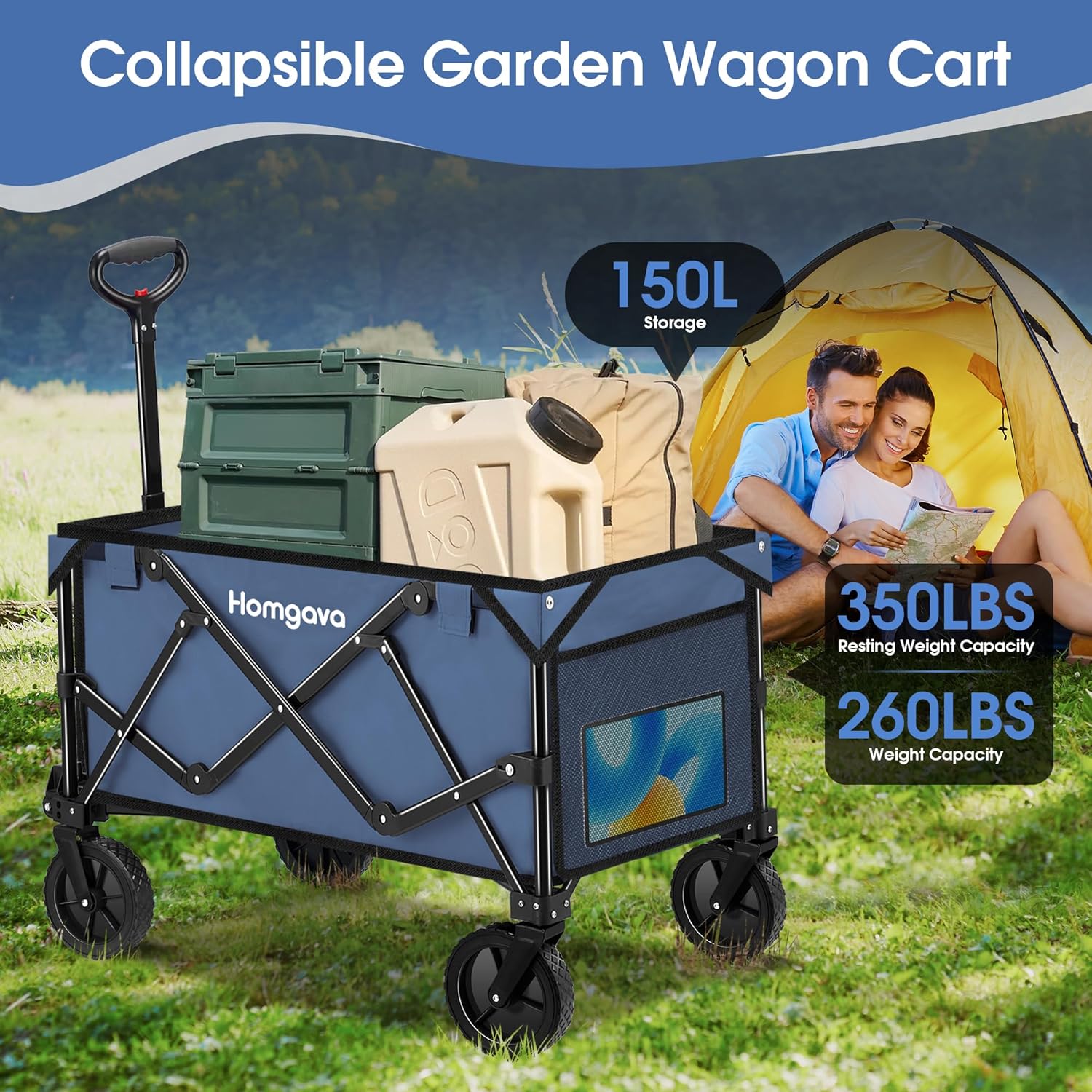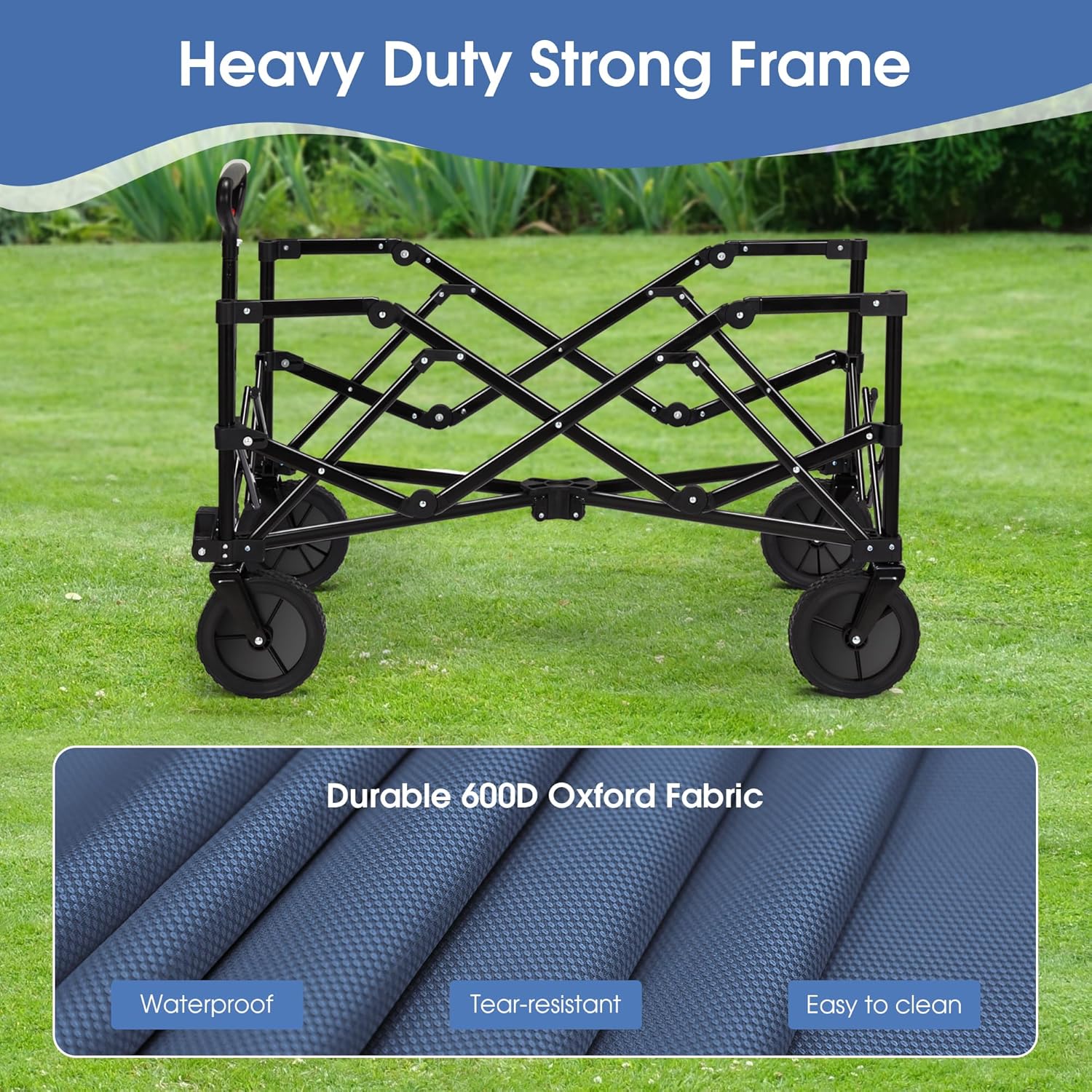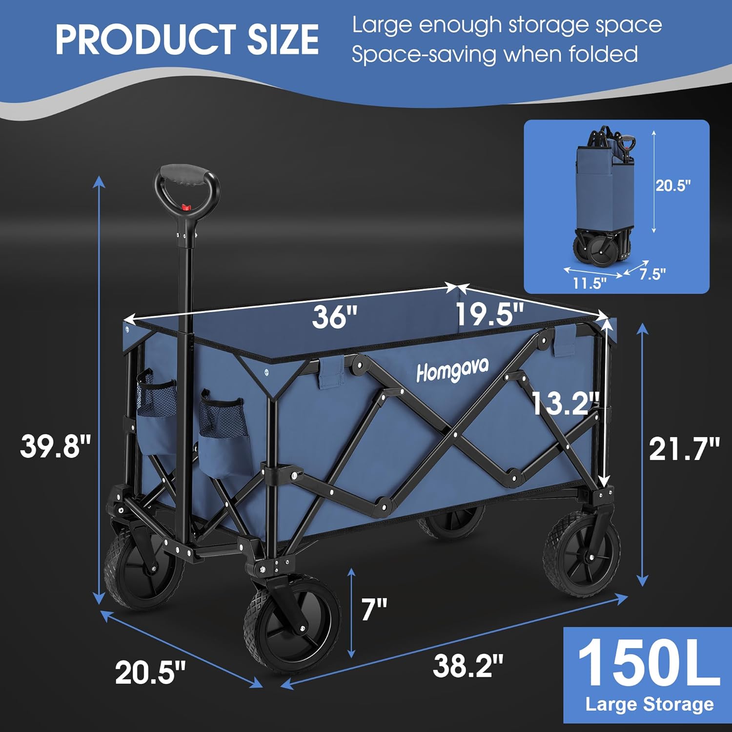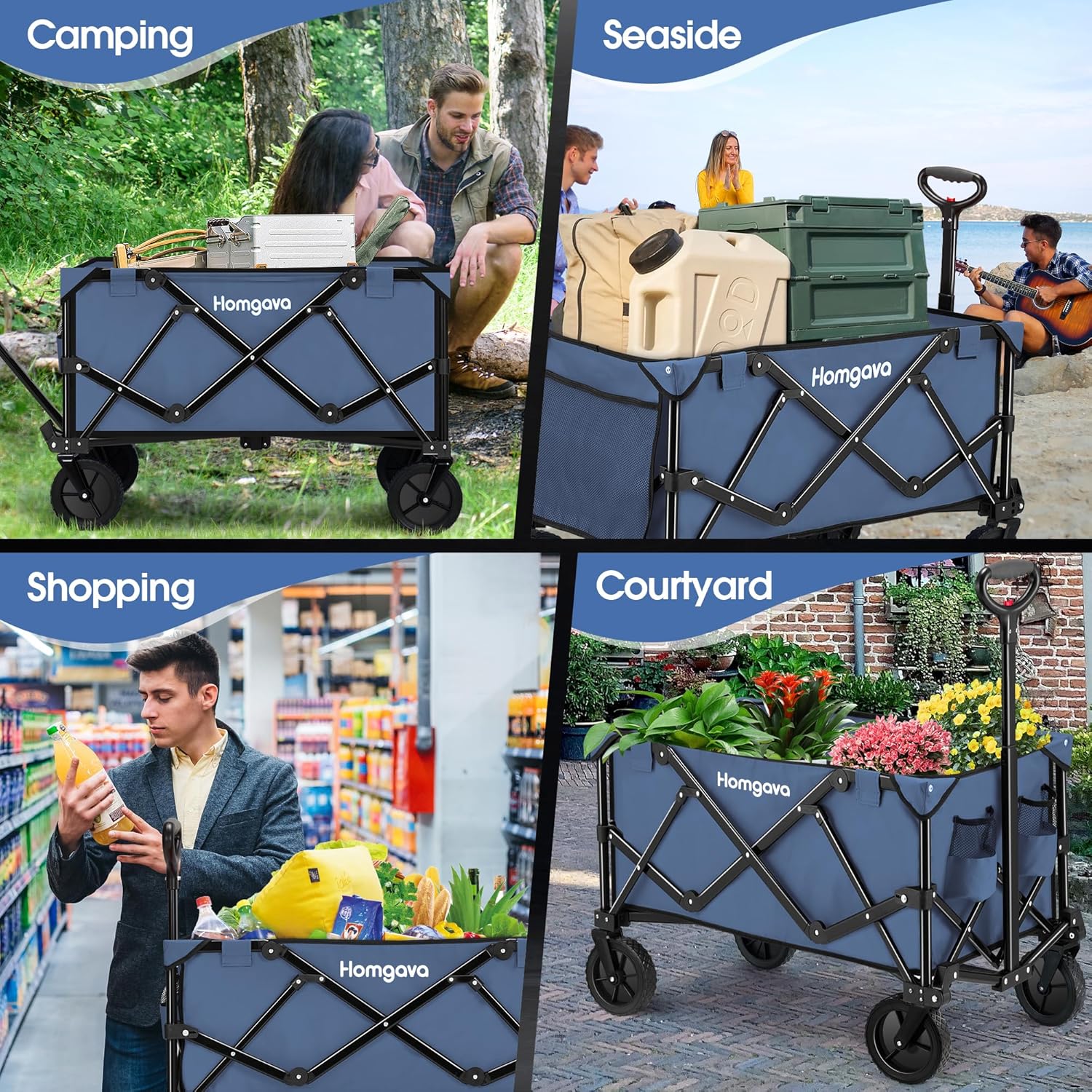 【Quick Setup and Collapse】The outdoor wagon cart with a compact design can be set up & folded in seconds without using tools. Just push center to open and pull center to fold it. It is easy to operate and transport.