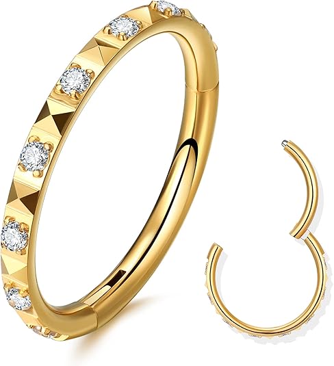 [MATERIAL]: 316L Surgical Stainless Steel + Cube Zircon. Hypoallergenic hinged hoop without lead, nickel and cadmium. The hinged rings use vacuum plating, the color more durable, it can be worn with sensitive skin, sturdy and durable for daily wear.