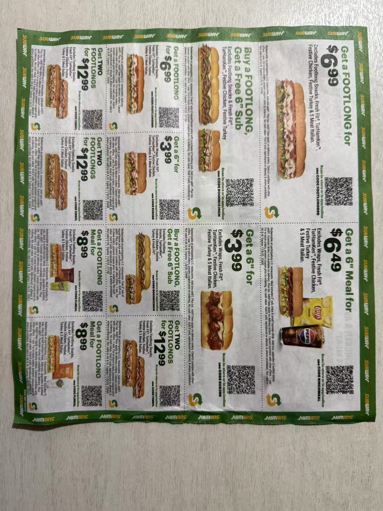 SUBWAY 优惠劵有效期至11/08/2025